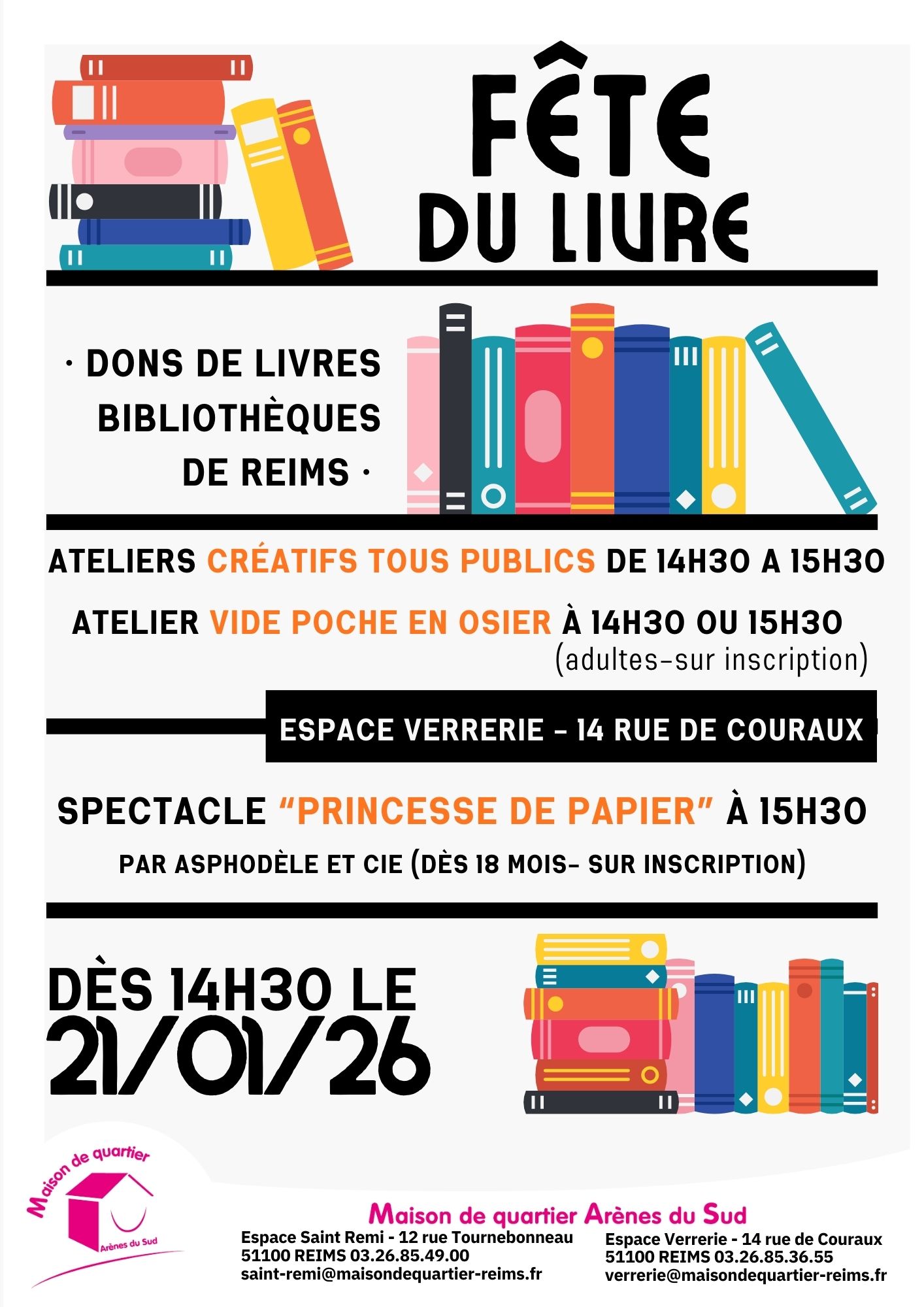 📌 Inscription obligatoire auprès des secrétariats : secretariat.saint-remi@maisondequartier-reims.fr ou secretariat.verrerie@maisondequartier-reims.fr