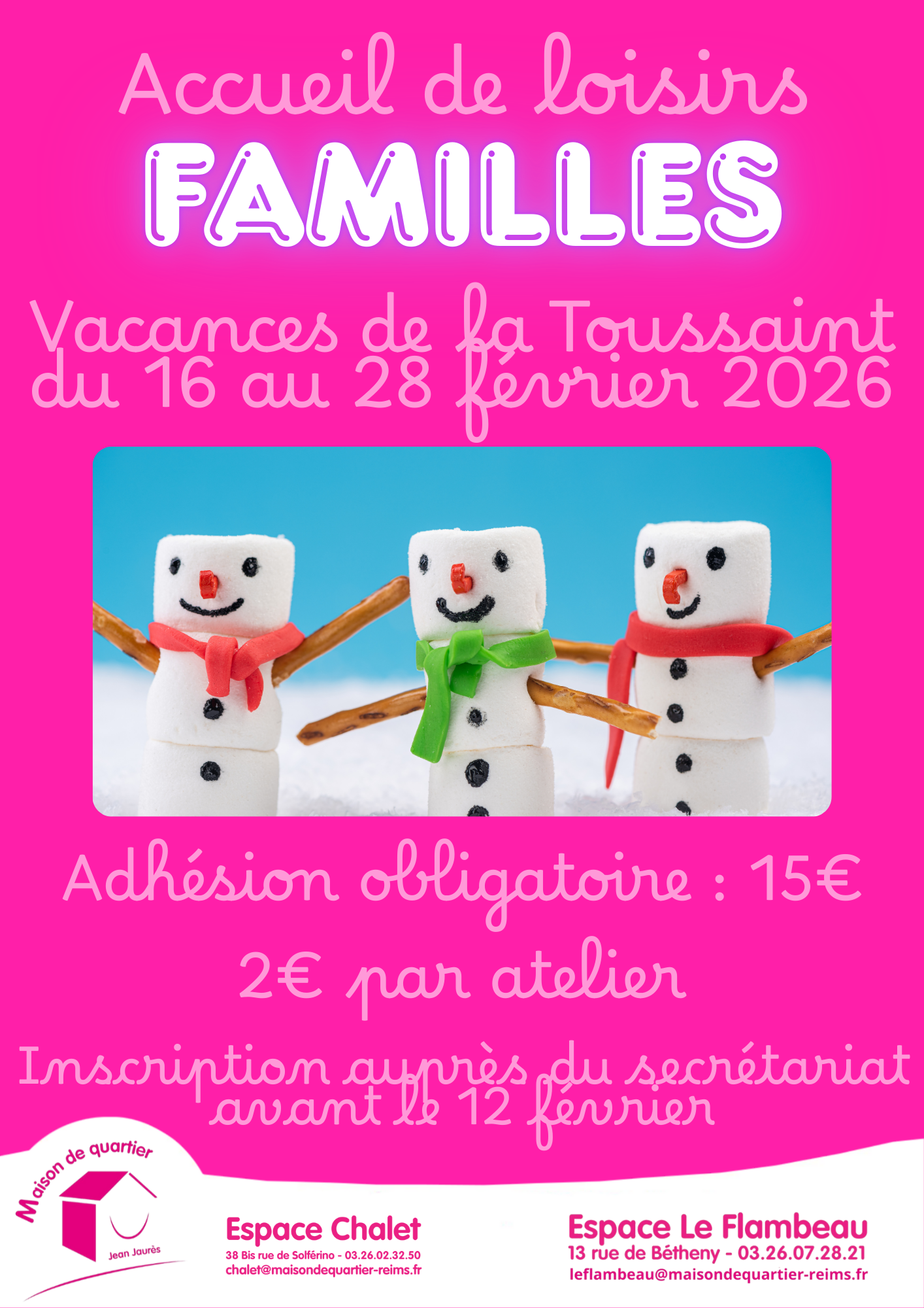 📌 Programme complet et inscriptions : au secrétariat de la Maison de quartier Jean Jaurès – Espace Le Flambeau. 03.26.07.28.21