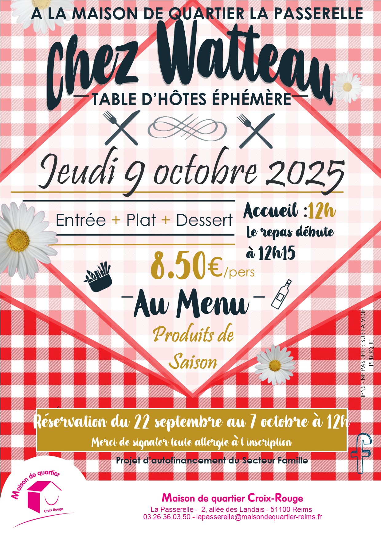 [CHEZ WATTEAU] Rendez-vous le 22 septembre au 07 octobre pour réserver votre place 🍽🥗