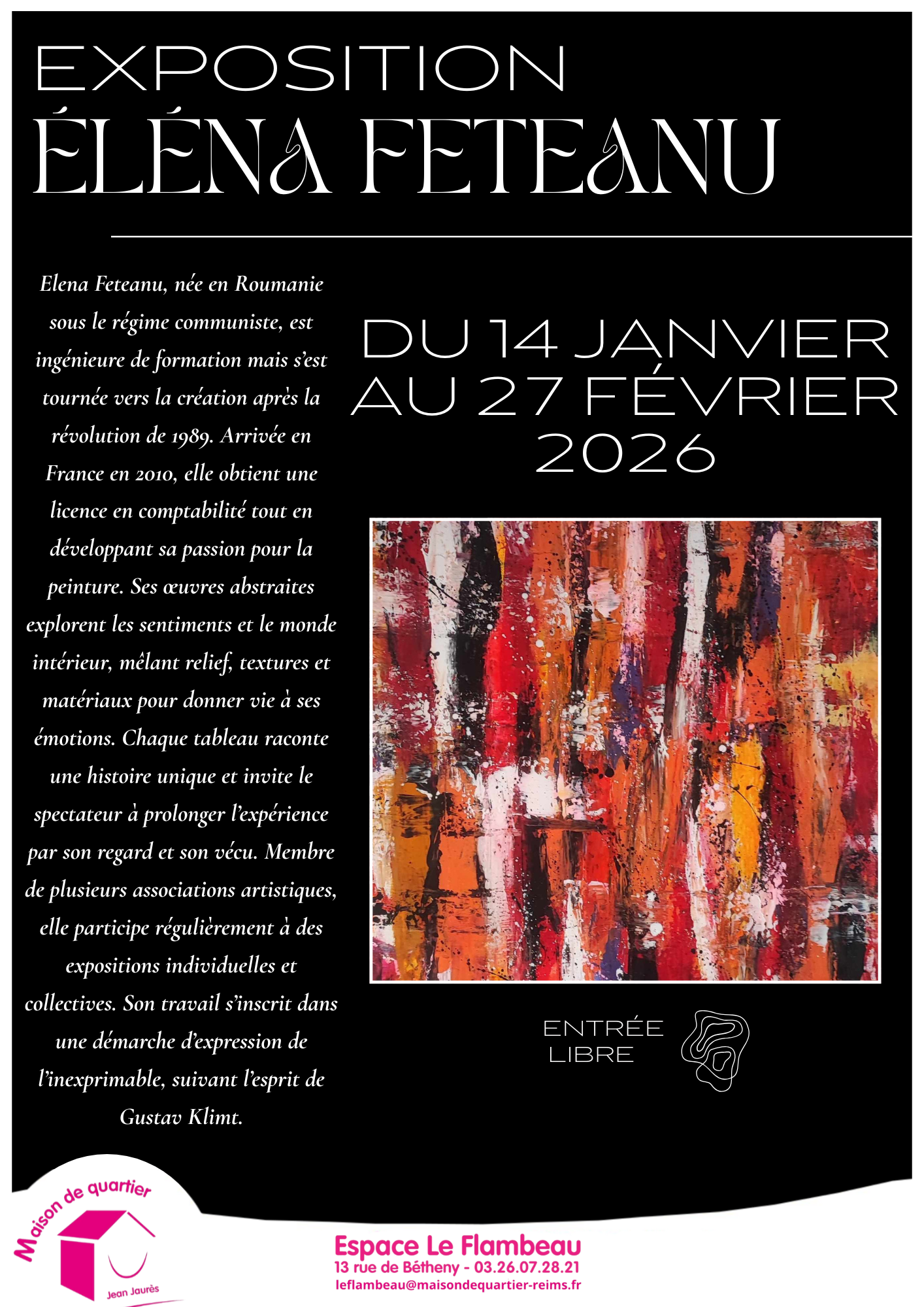 Exposition Eléna FETEANU du 14 janvier au 27 février 2026. « Œuvres abstraites »