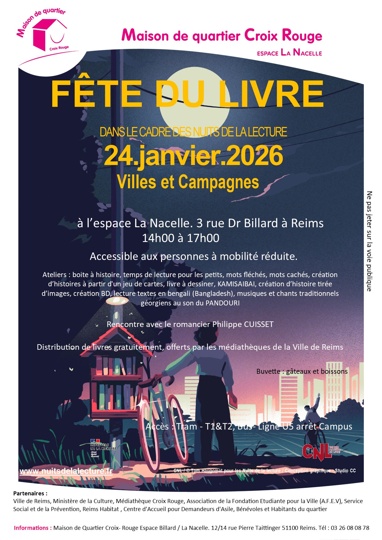 Ville de Reims, Ministère de la Culture, Médiathèque Croix Rouge, Association de la Fondation Etudiante pour la Ville (A.F.E.V), Service Social et de la Prévention, Reims Habitat , Centre d’Accueil pour Demandeurs d’Asile, Bénévoles et Habitants du quartier