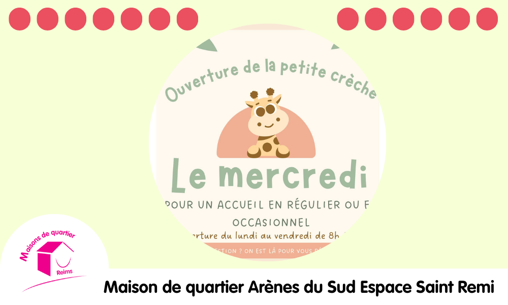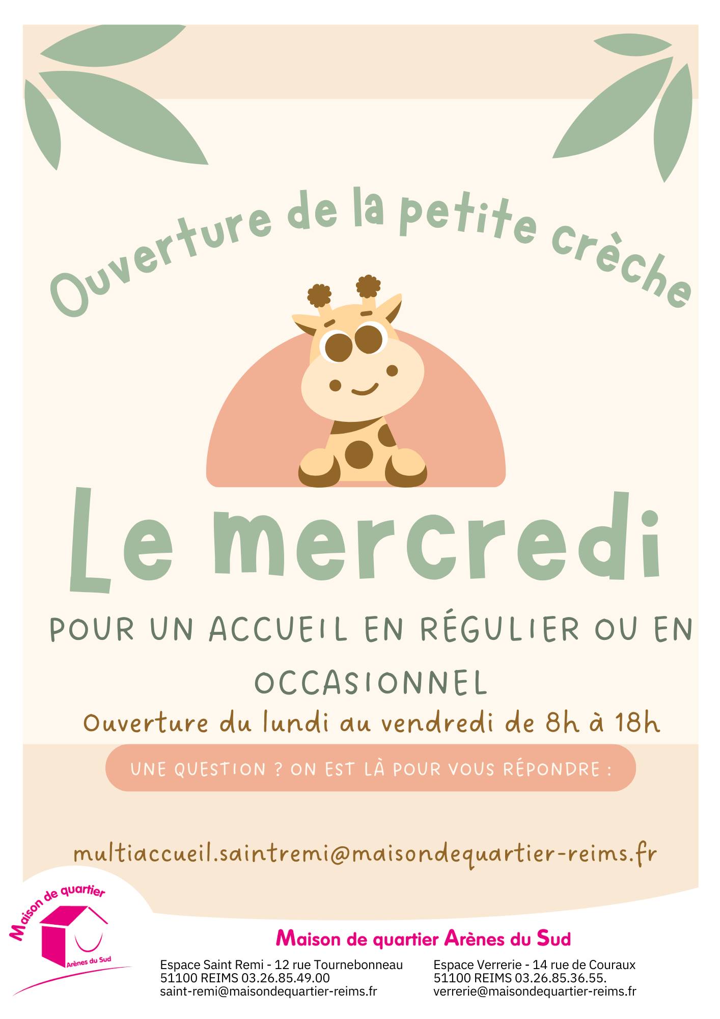 La petite crèche de la Maison de quartier Arènes du Sud - Espace Saint -Remi est ouverte toute la semaine, et depuis janvier, le mercredi également 🎉