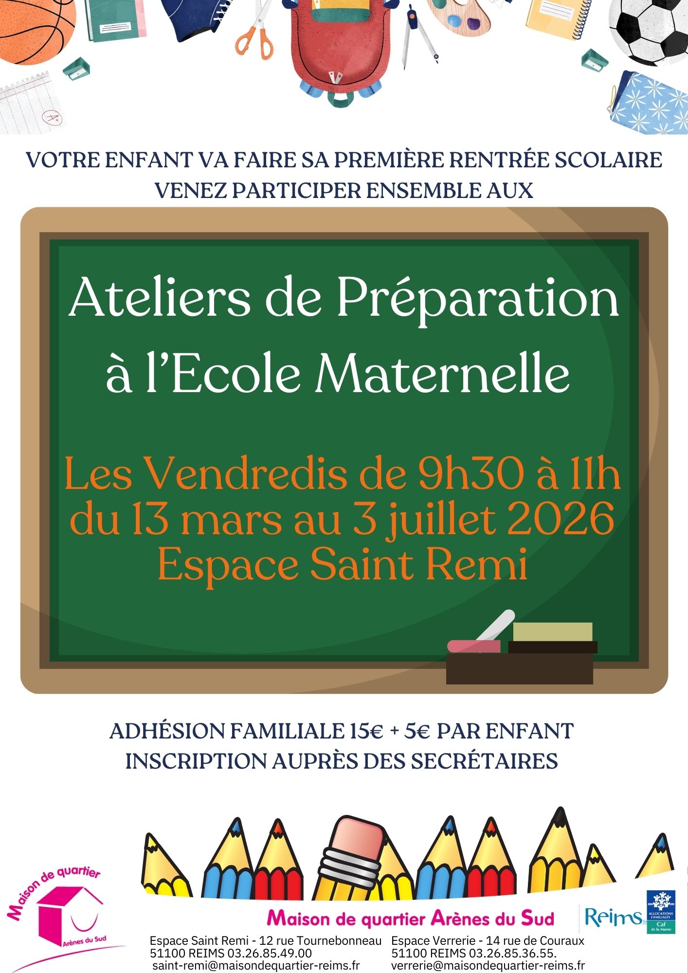 ๐ Inscription obligatoire auprรจs des secrรฉtariats : secretariat.saint-remi@maisondequartier-reims.fr ou secretariat.verrerie@maisondequartier-reims.fr