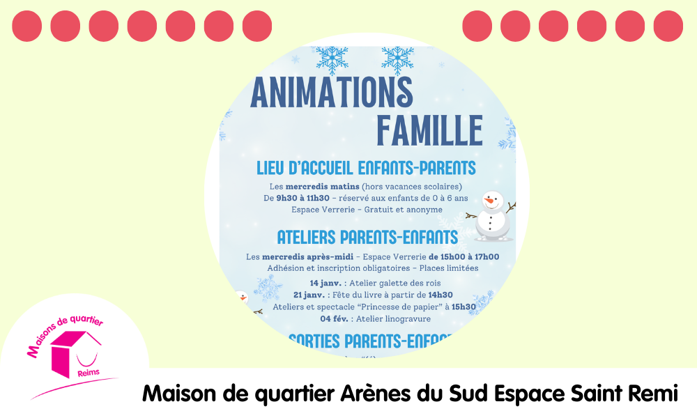 📌 Inscription obligatoire auprès des secrétariats : secretariat.saint-remi@maisondequartier-reims.fr ou secretariat.verrerie@maisondequartier-reims.fr