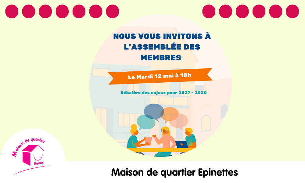 La Maison de quartier Épinettes a le plaisir de vous inviter à sa prochaine Assemblée des Membres. C’est le moment privilégié pour s’informer, s’exprimer et participer activement à la vie de notre quartier.