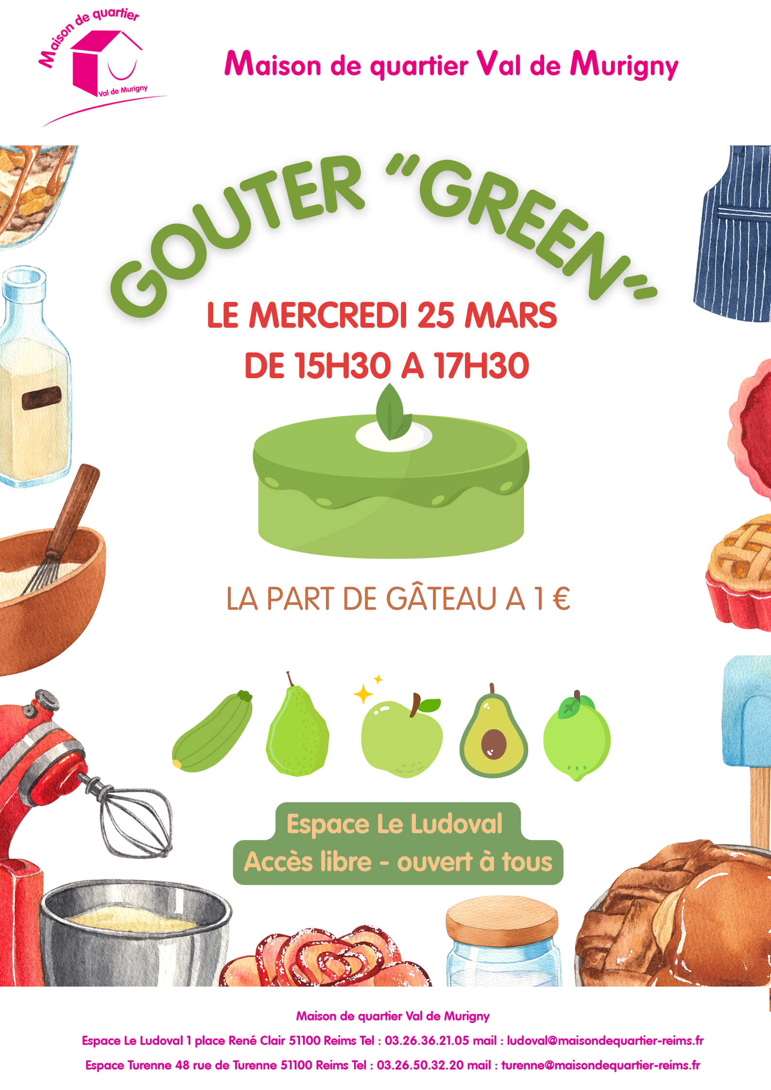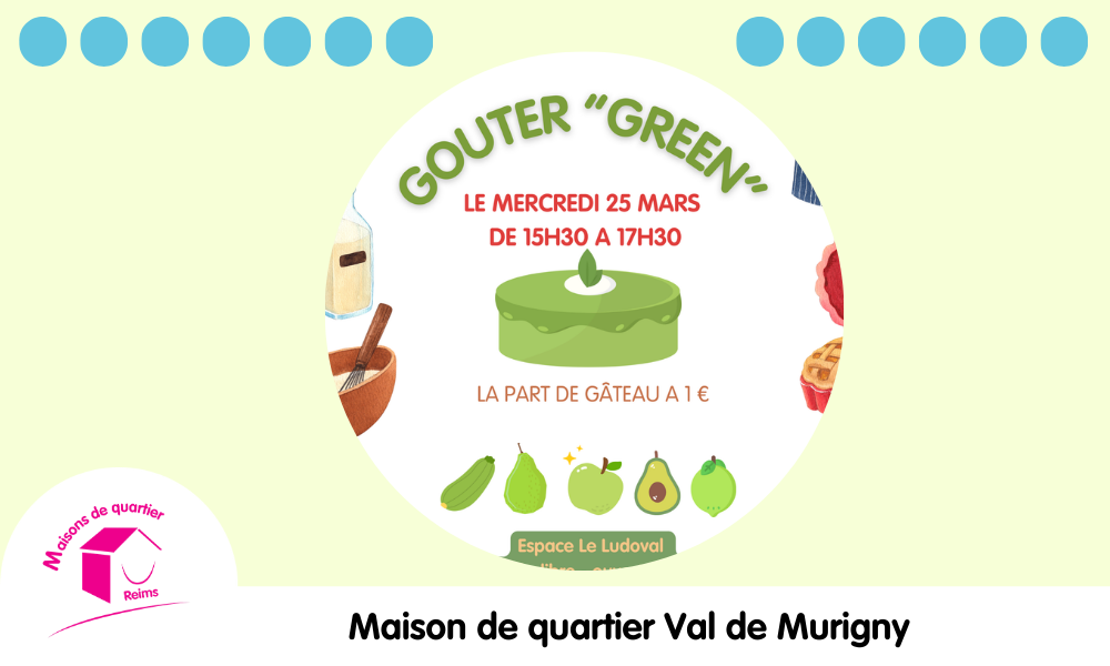 La Maison de quartier Val de Murigny espace Le Ludoval organise un goûter « green » le mercredi 25 mars de 15h30 à 17h30