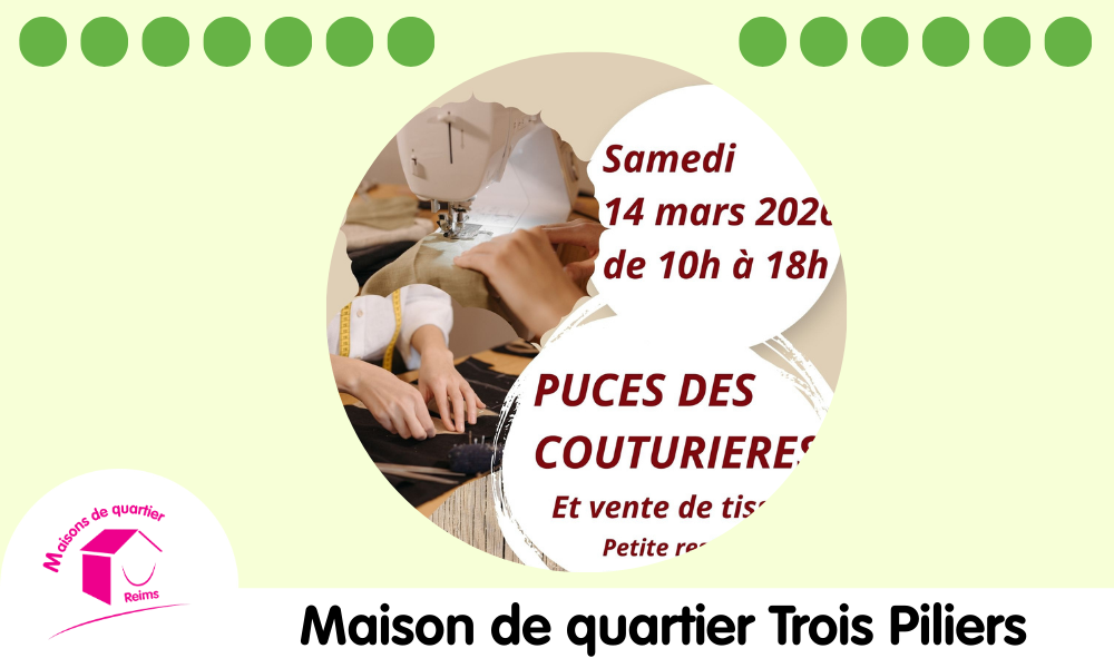 Les Puces des couturières se dérouleront le Samedi 14 mars 2026 de 10h à 18h.