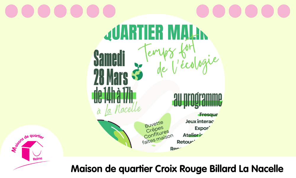 Le samedi 28 mars, de 14h à 17h, l’Espace La Nacelle se transforme pour accueillir le « Quartier Malin ». Que vous soyez passionné de jardinage, amateur de lecture ou simplement curieux, cet événement gratuit est ouvert à tous les habitants.